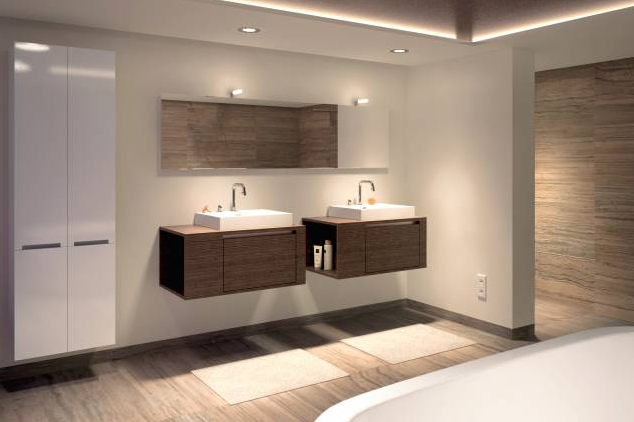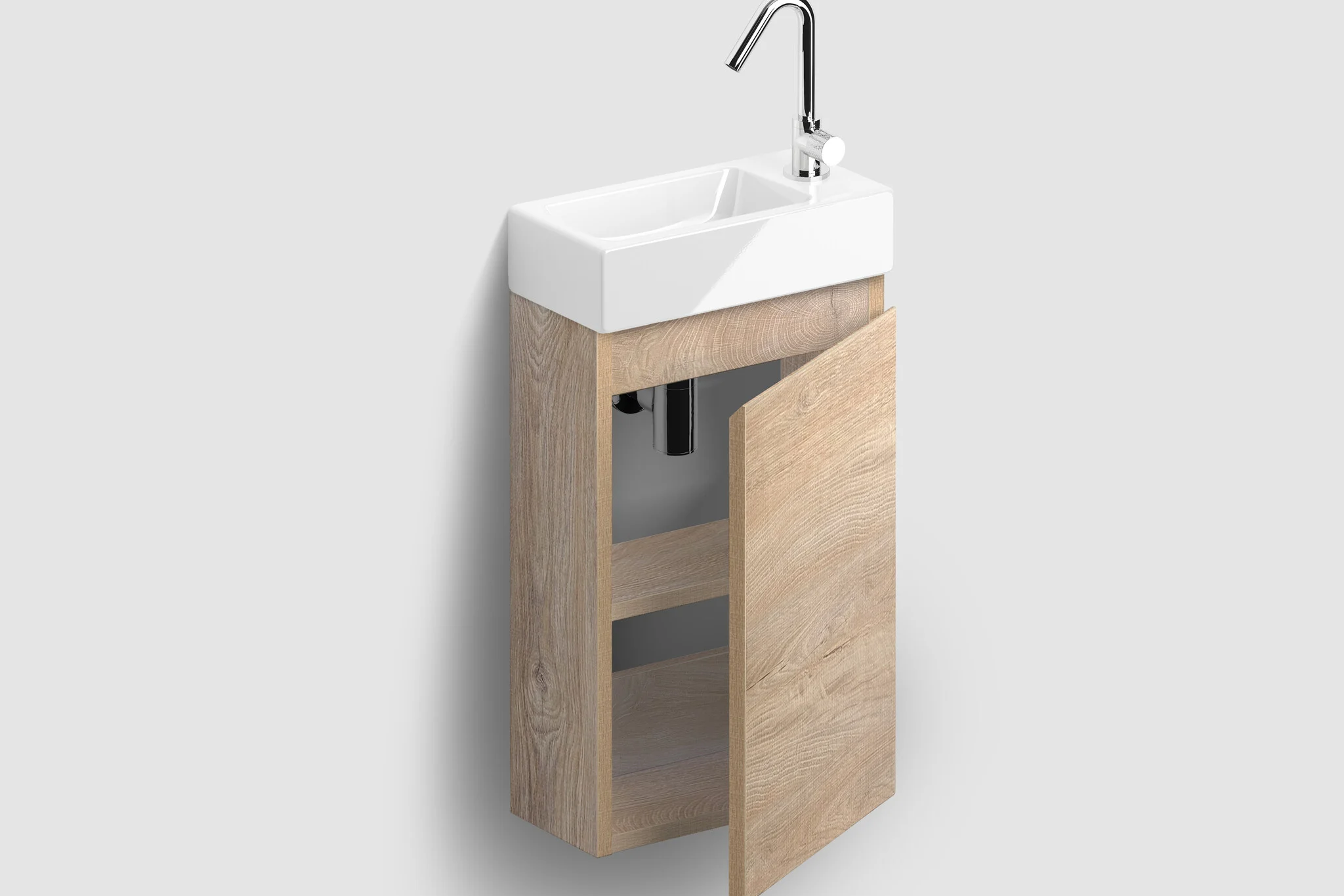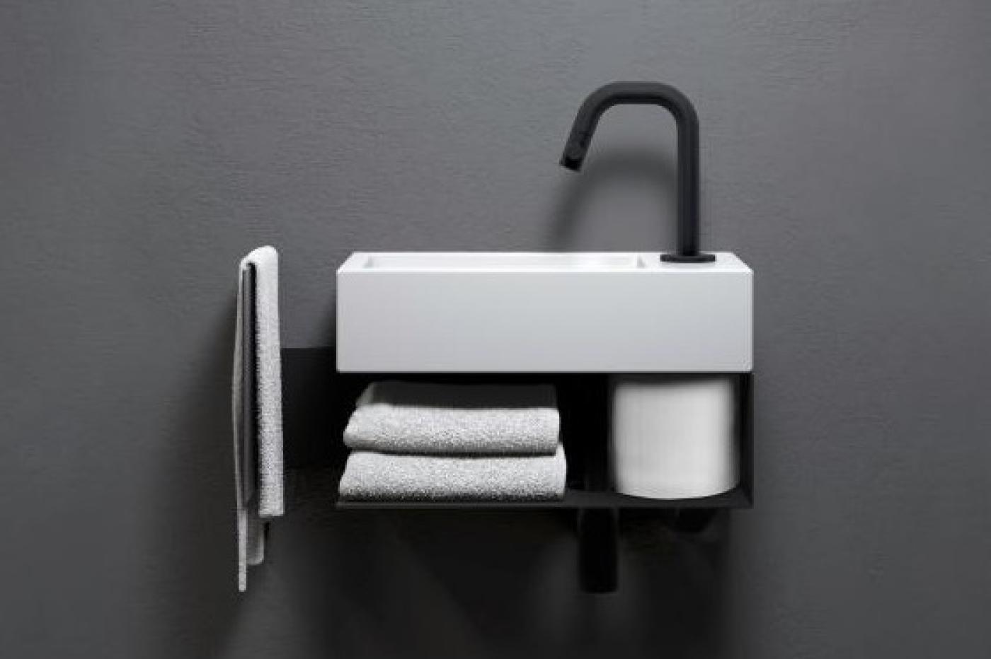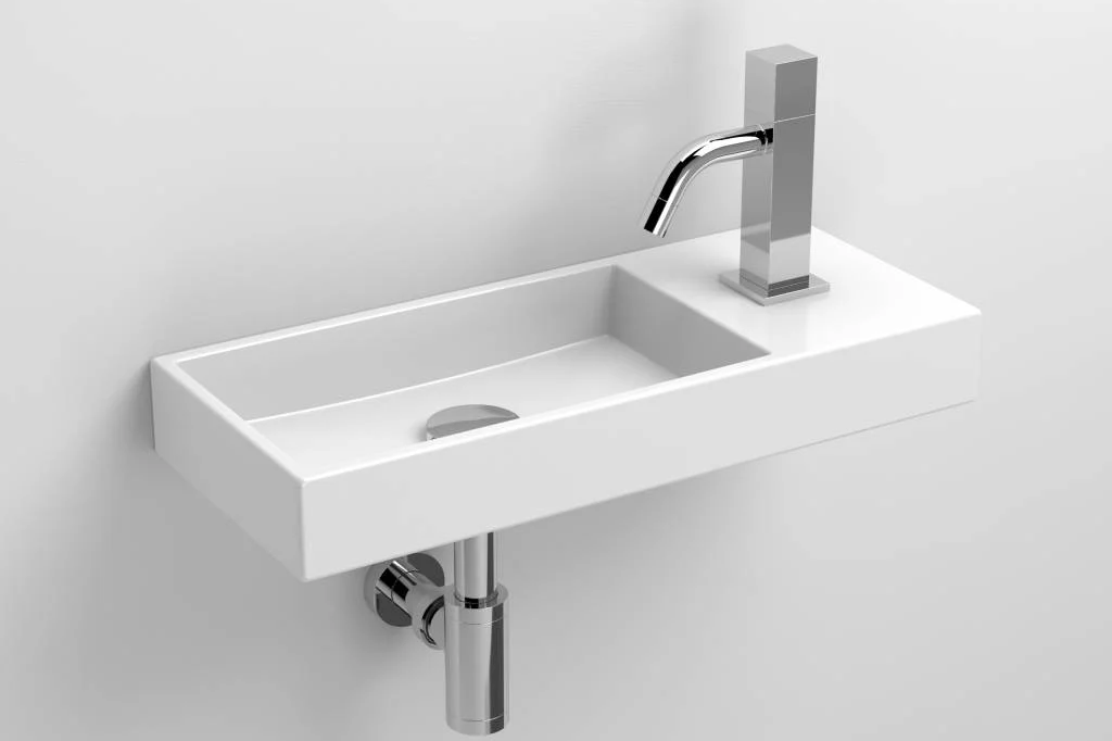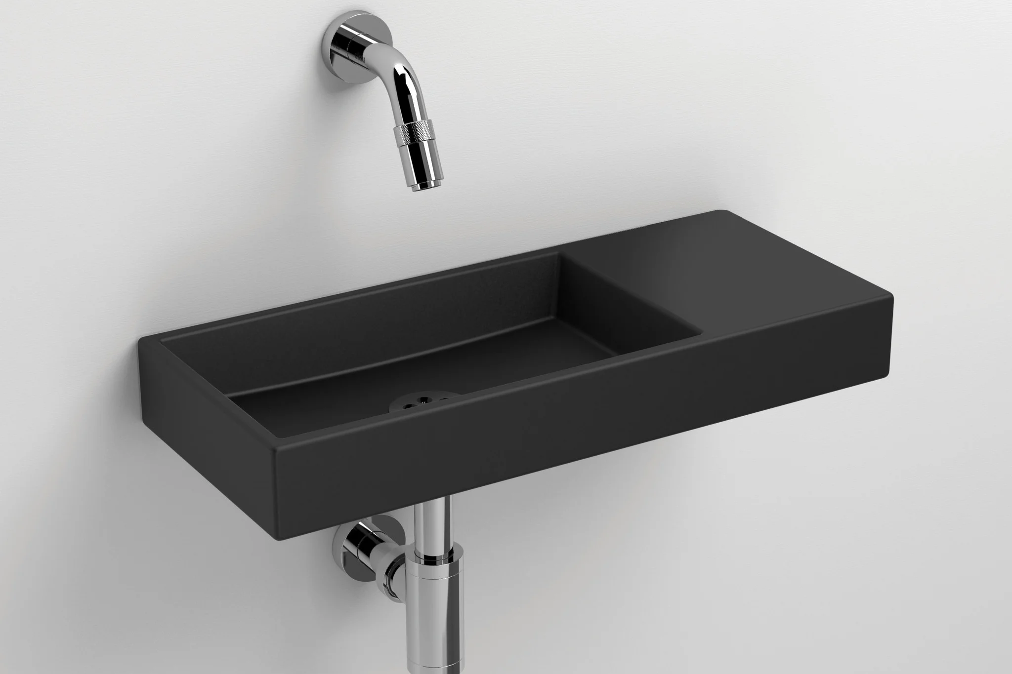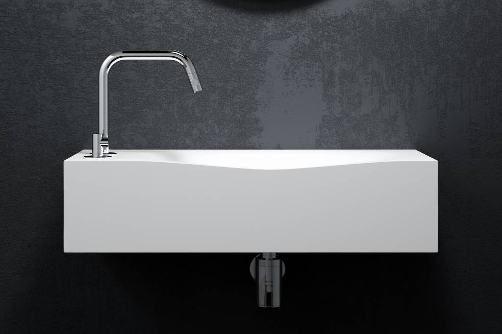 Montage mural ou sur étagère. Disponible avec ou sans trou pour robinetterie.